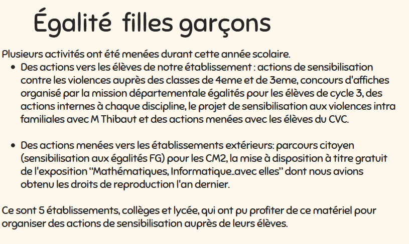 Pôle « Égalité fille-garçon », extrait du rapport d’activité du labomath Hedy Lamarr